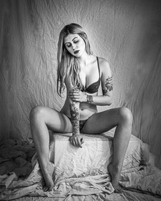 September 2019. I finally had the pleasure of shooting with part-time model Hannah, from Plymouth, Devon. We discussed the style for the shoot and ended up with a glamour, boudoir and lingerie theme, where we mixed and matched her lingerie with my dressing-up wardrobe. She was so good that we whizzed through the first few sets, so that I had to really think on my feet to create different looks, with different lighting and mood. The editing was fun too, as I played with Photoshop to desaturate some images and convert others to a more grungy black and white.